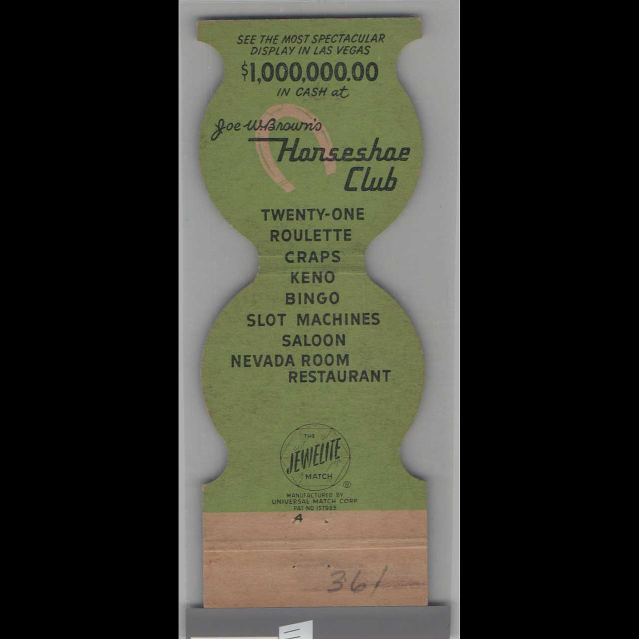 Joe W. Brown’s Horseshoe Club Matchbook Cover Las Vegas