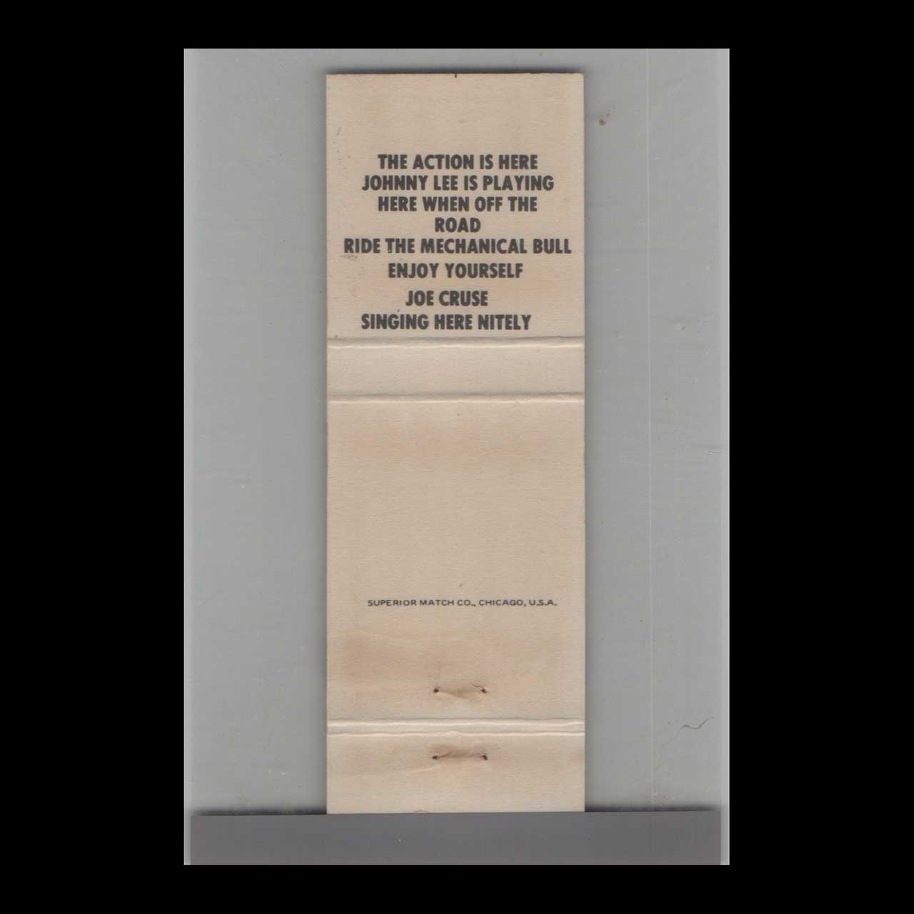 Johnny Lee’s Club in Pasadena, TX, was a vibrant nightlife spot known for its lively music and welcoming atmosphere. This vintage matchbook is a classic ephemera relic cherished by Americana collectors.