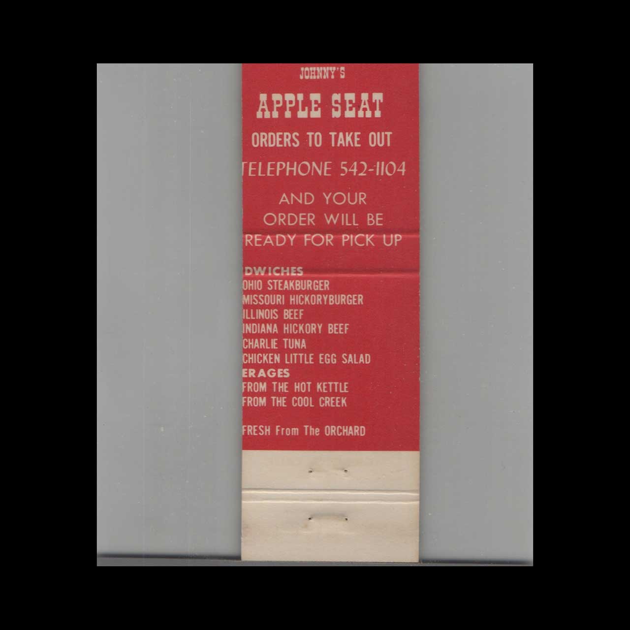 Johnny’s Apple Seat Torrance CA Matchbook Cover