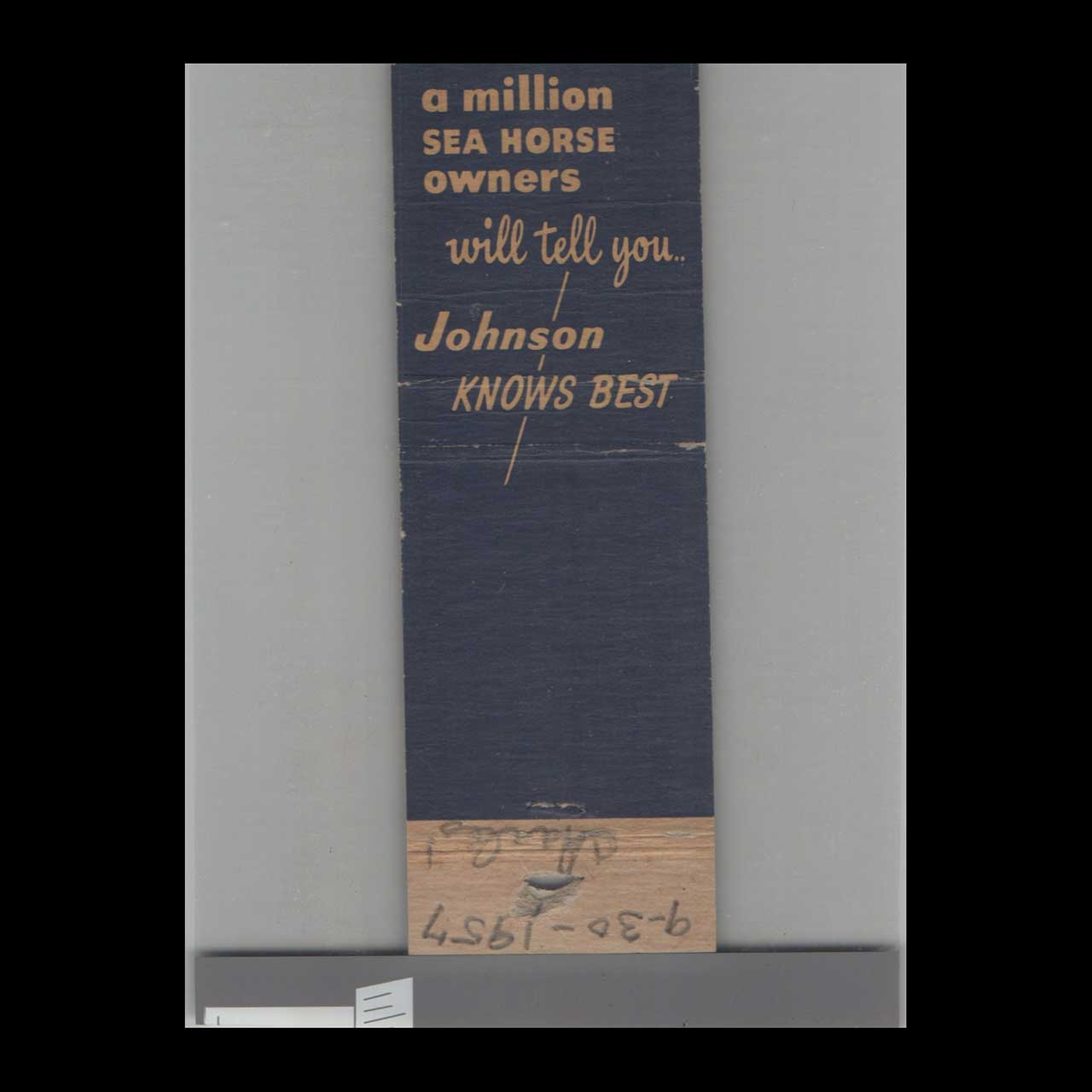 Johnson’s Marine in Newport, RI, specialized in Johnson Outboard Motors, serving boating enthusiasts with quality marine equipment. A classic ephemera relic cherished by vintage matchbook collectors and Americana aficionados.