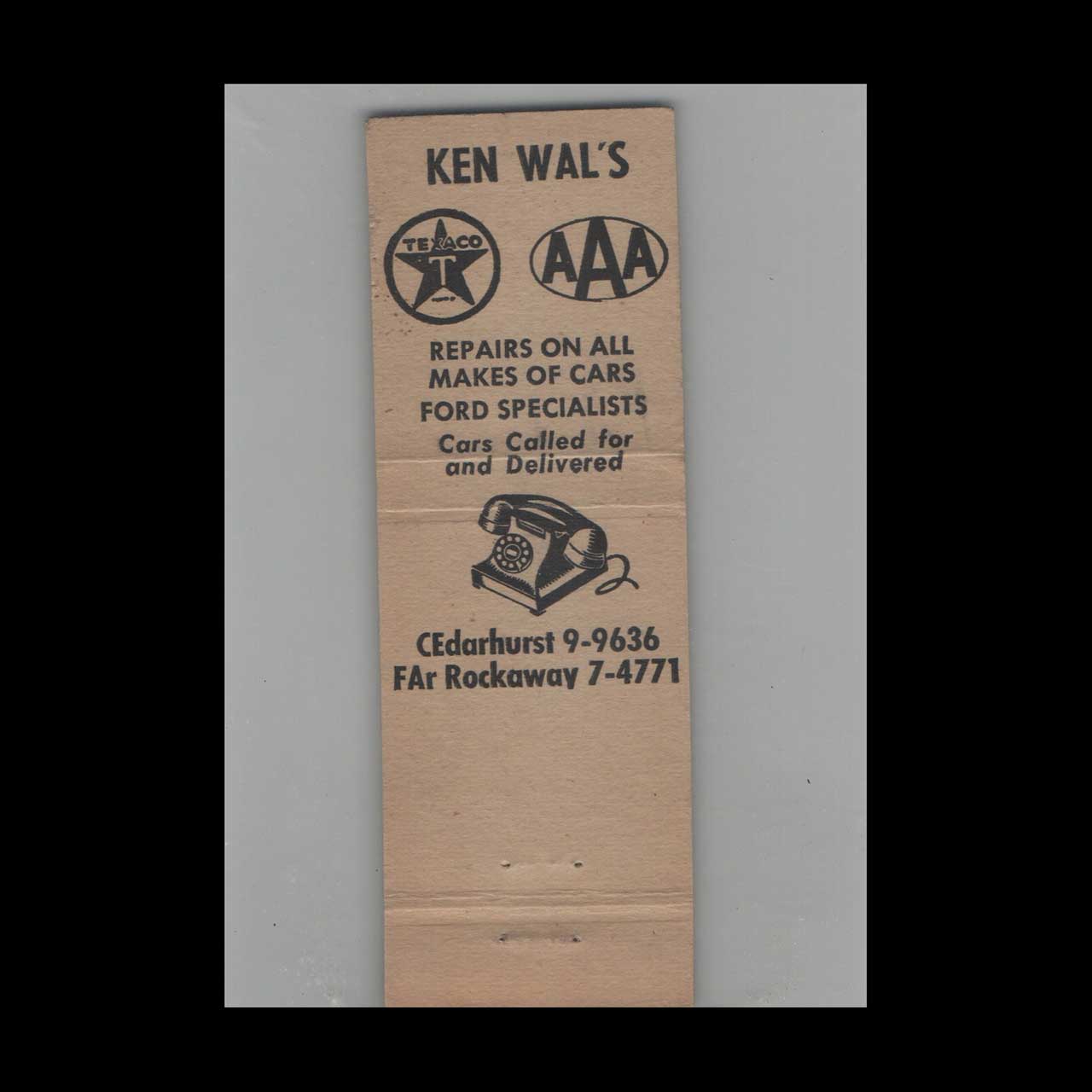 Ken-Wal’s Texaco Gas Station Matchbook Cover Inwood NY