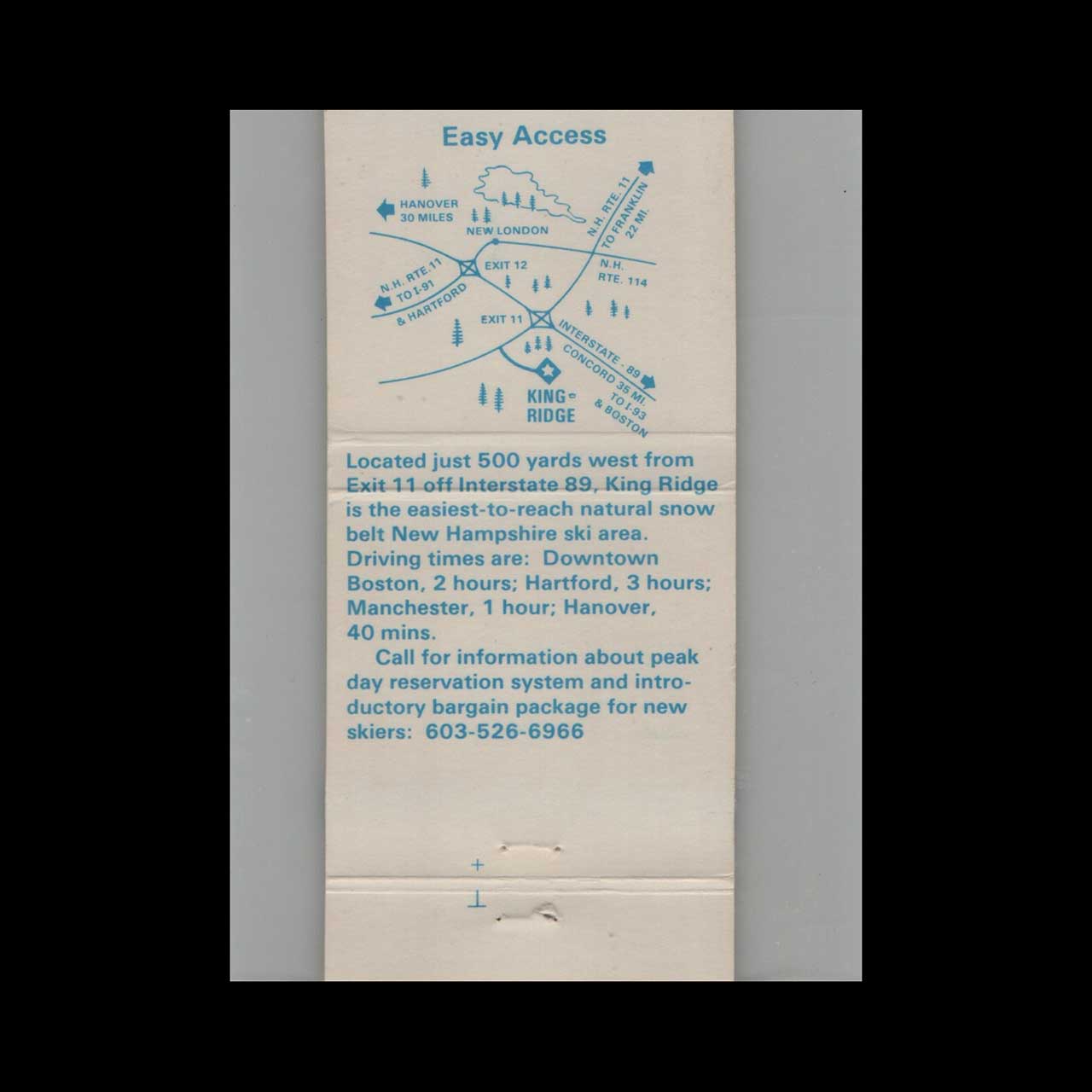 King Ridge Ski Area Matchbook Cover New London NH