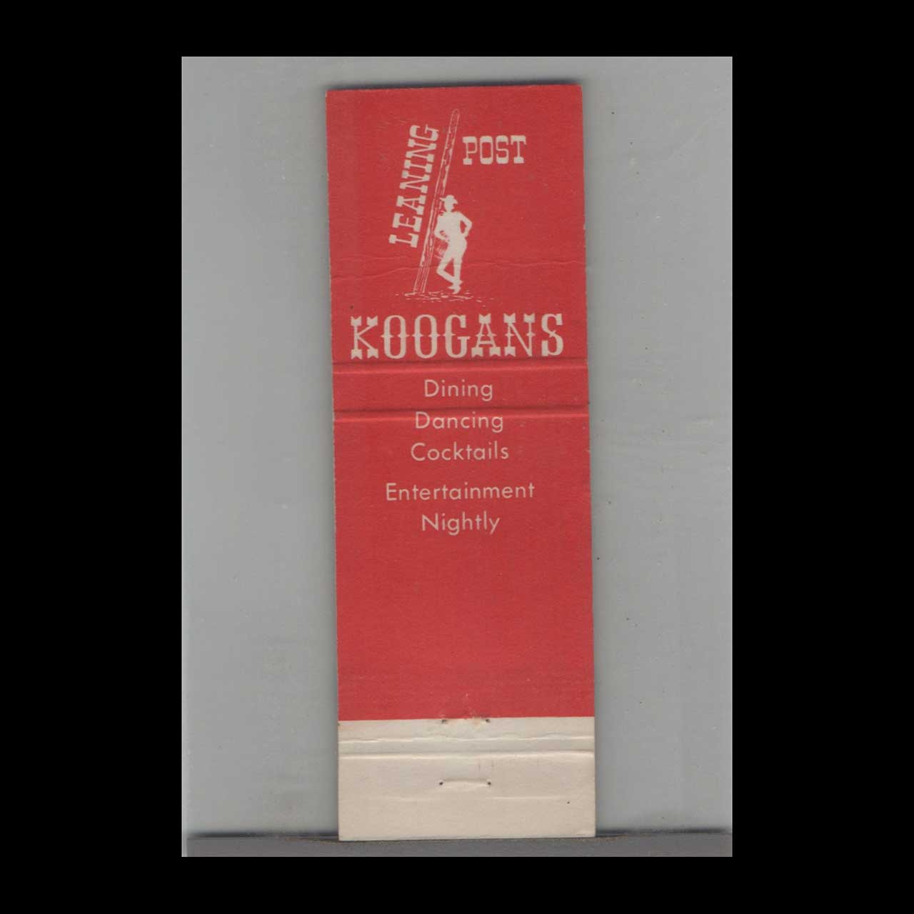 Koogans Leaning Post in St. Louis Park, MN, was a beloved local bar known for its warm atmosphere and community spirit. This vintage matchbook cover is a classic ephemera relic cherished by Americana collectors.