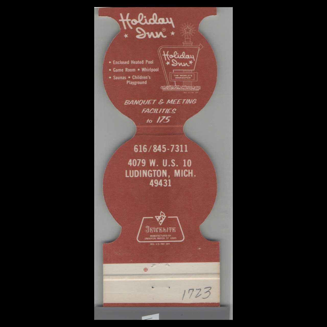 The Logger’s Landing in Ludington, MI, evokes rustic charm with its historic waterfront dining and lively atmosphere. This die-cut matchbook is a nostalgic piece of Americana for collectors.
