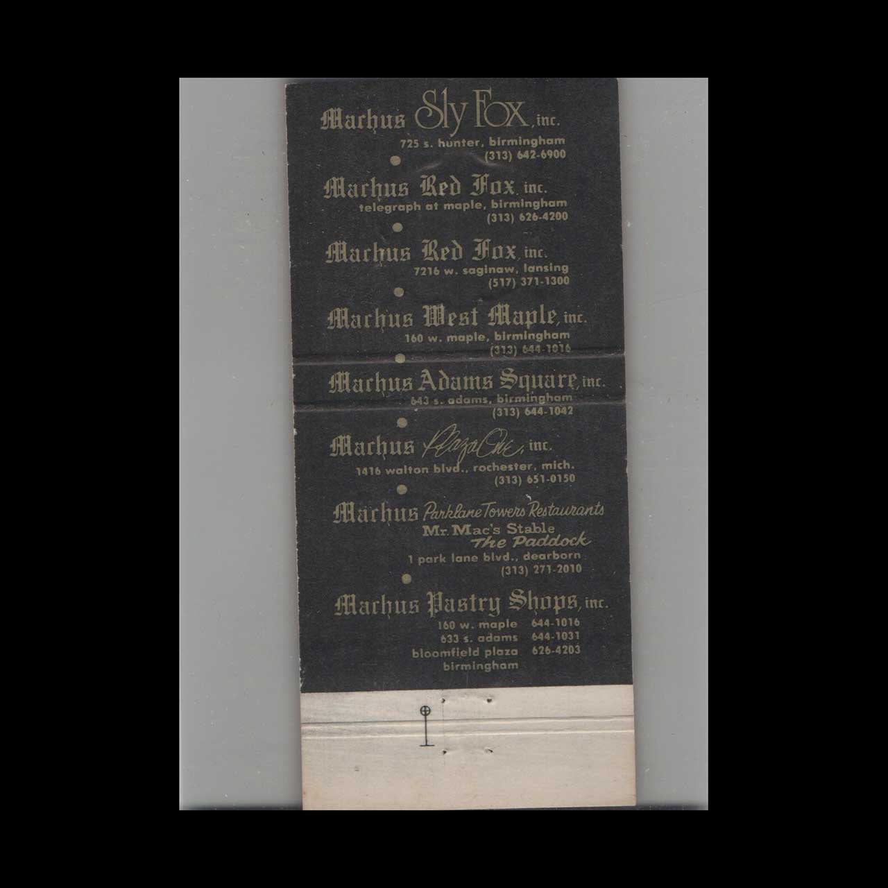 Machus Sly Fox Restaurant Matchbook Cover Birmingham AL