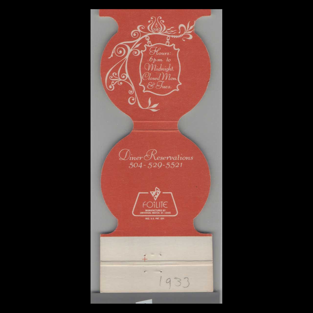 Maison Pierre New Orleans Matchbook Cover Die Cut