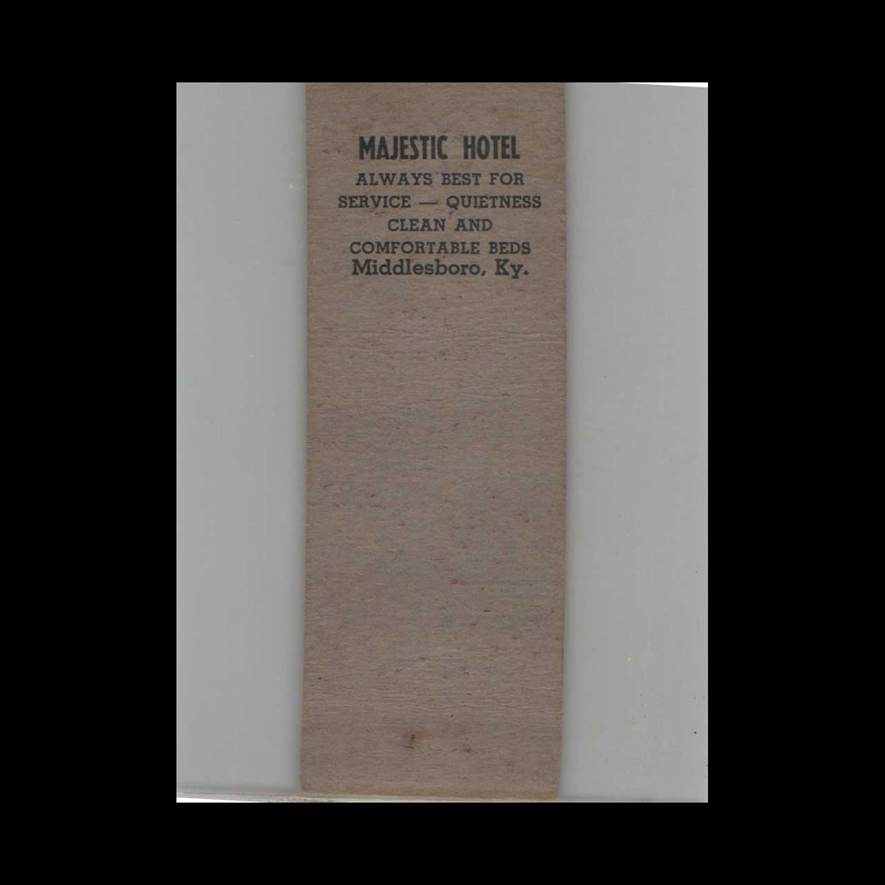 Majestic Hotel Middlesboro KY Matchbook Cover