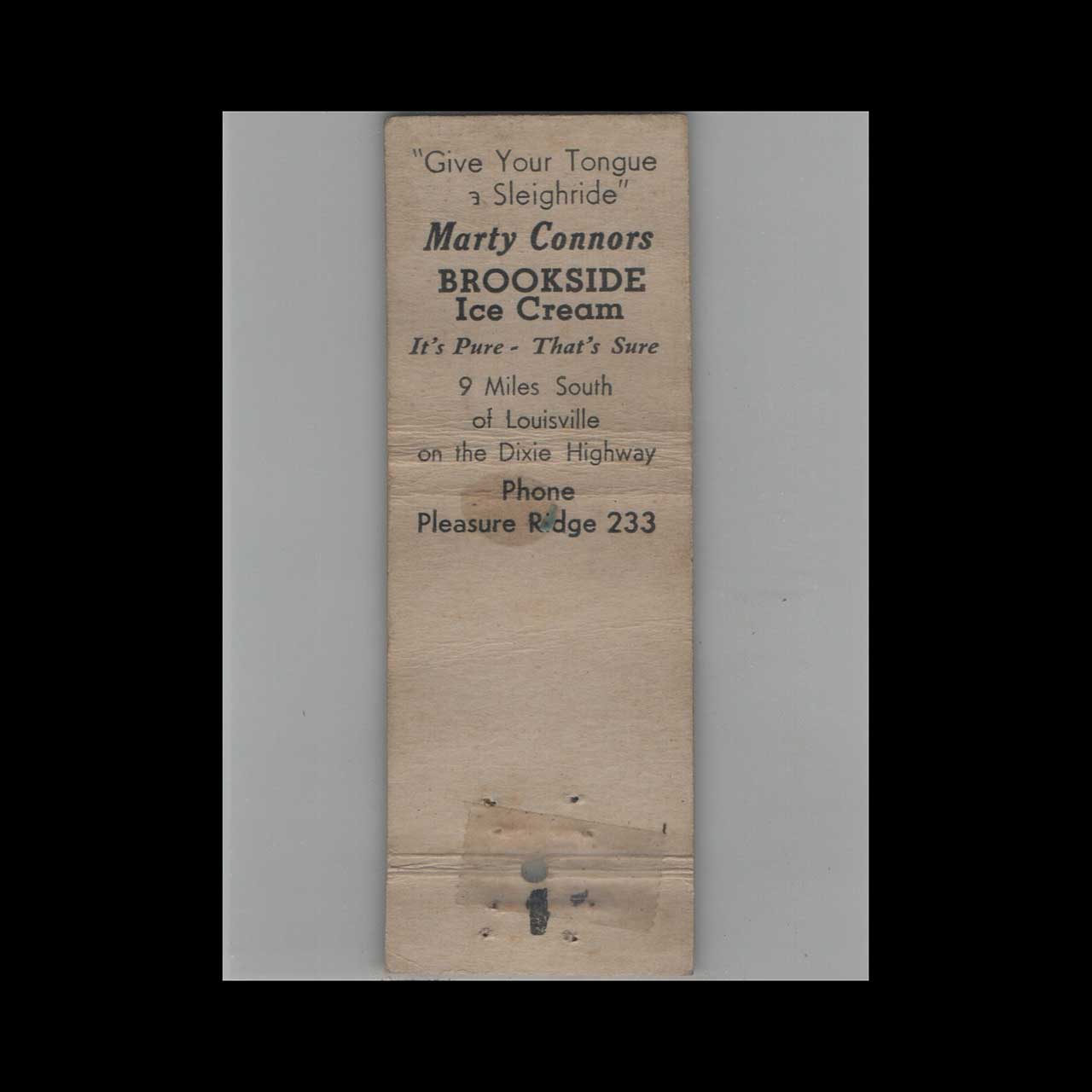 Marty Connors Brookside Eats Matchbook Cover