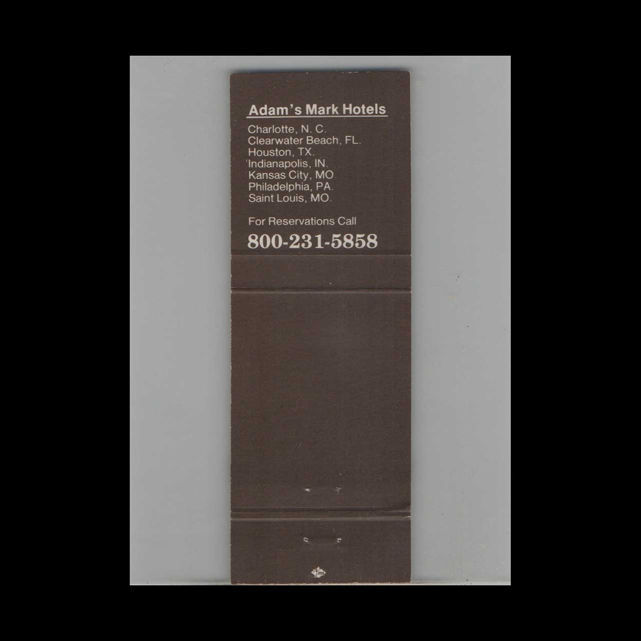 Vintage matchbook cover advertising Adams Mark Hotels Various Locations #5.