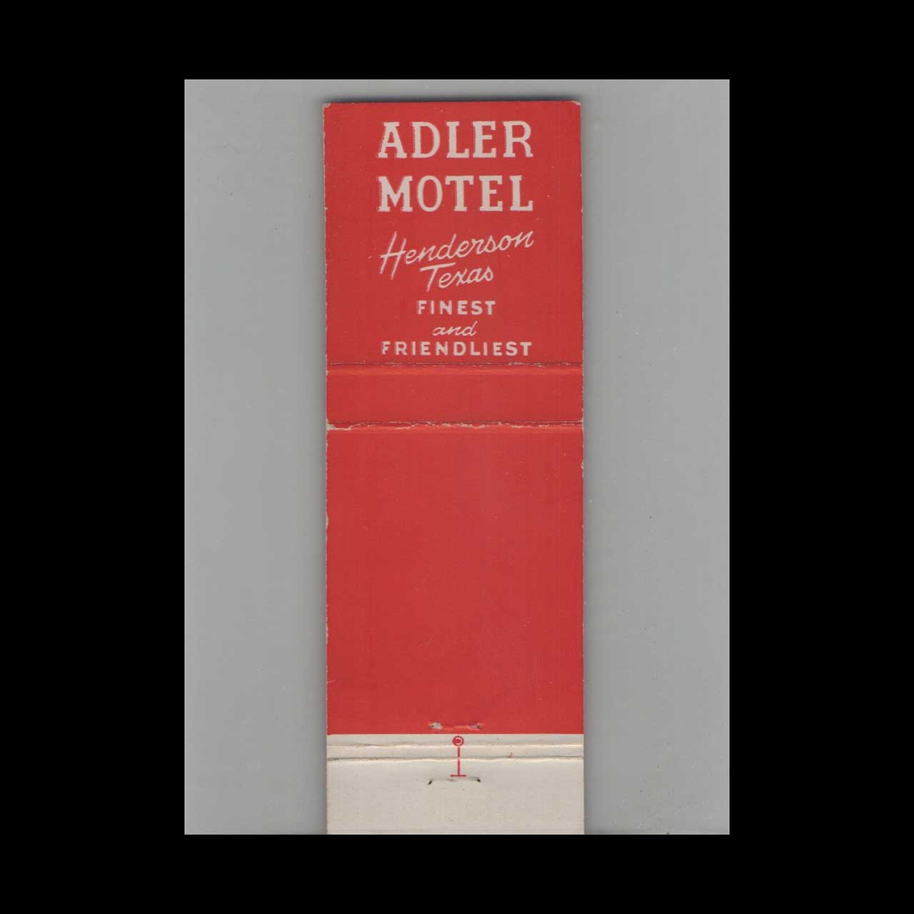 Vintage matchbook cover advertising Adler Motel Henderson TX #2.
