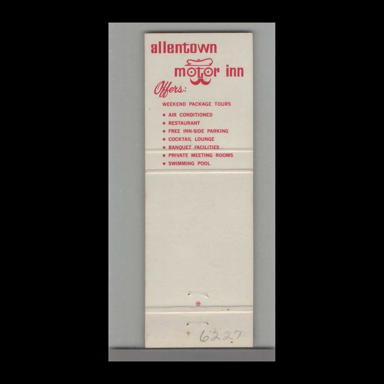 Vintage matchbook cover advertising Allentown Motor Inn Allentown, PA.