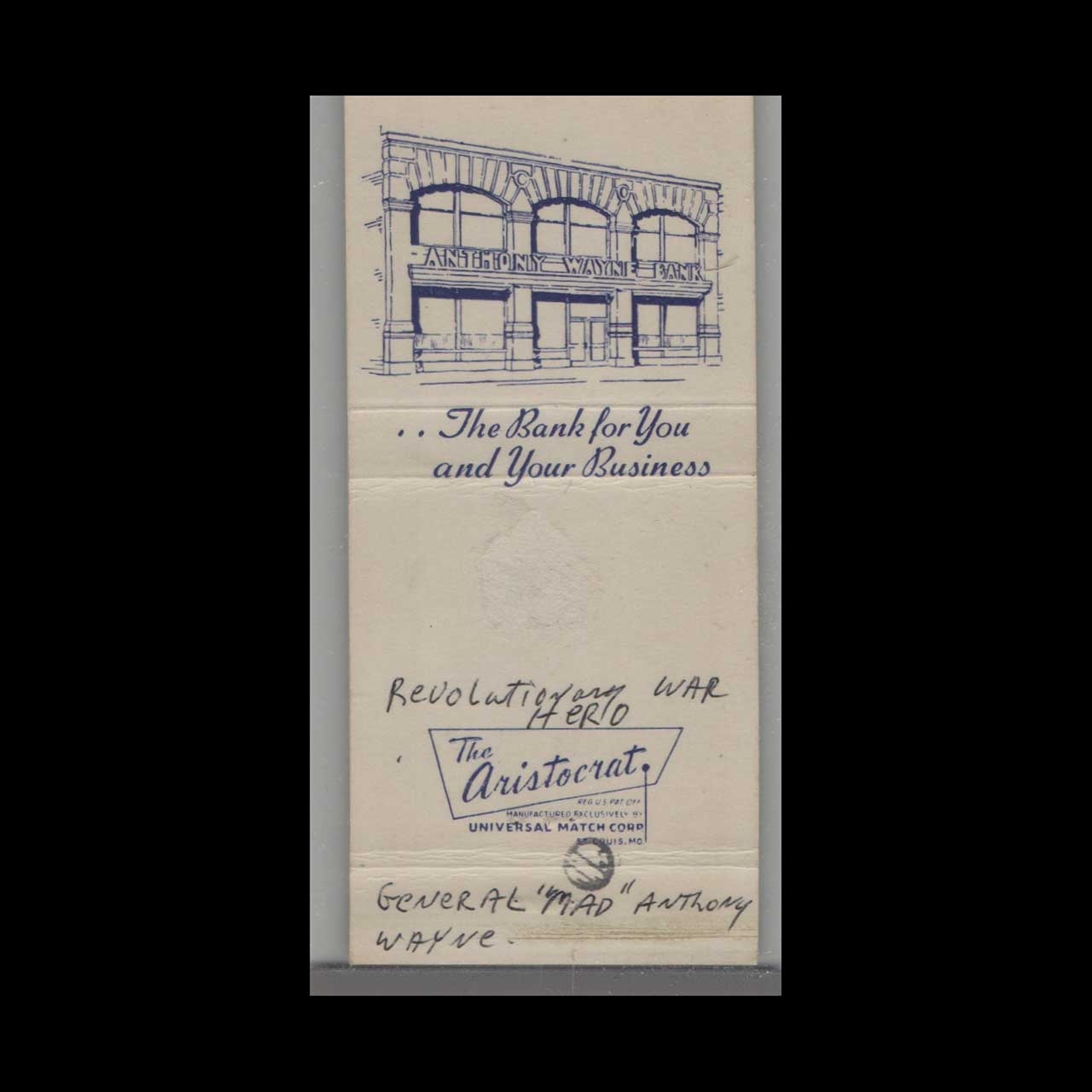 Vintage matchbook cover advertising Anthony Wayne Bank Ft. Wayne, IN.