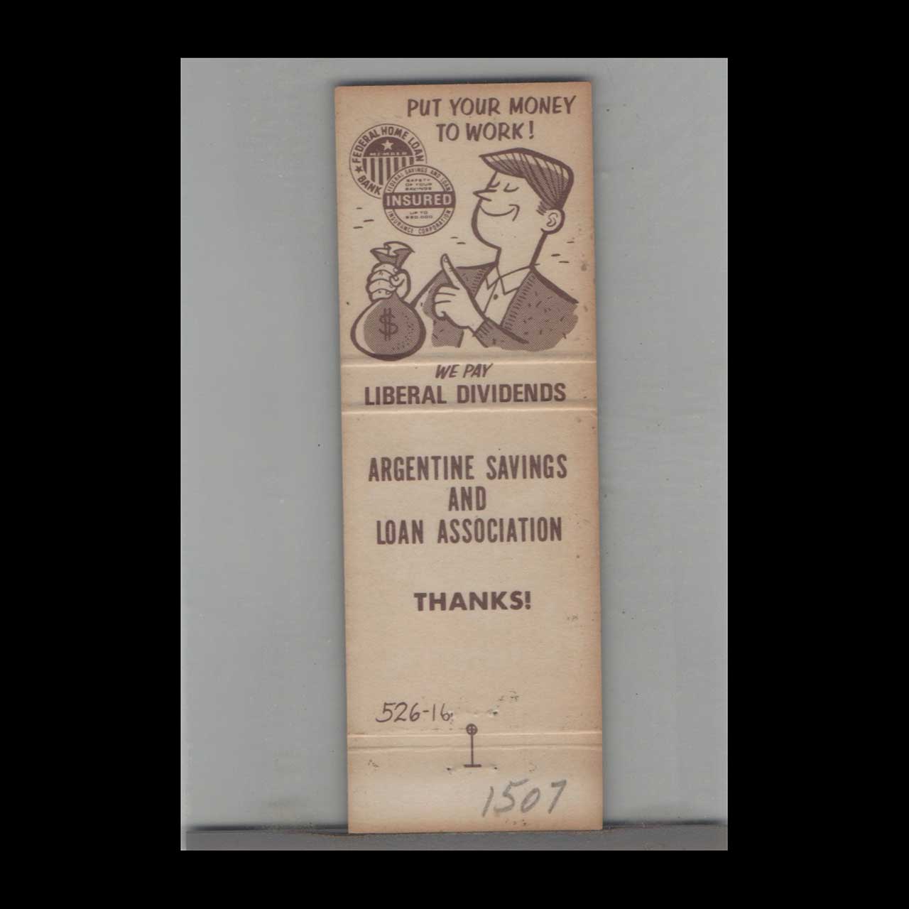 Vintage matchbook cover advertising Argentine Savings & Loan Association Kansas City, KS.