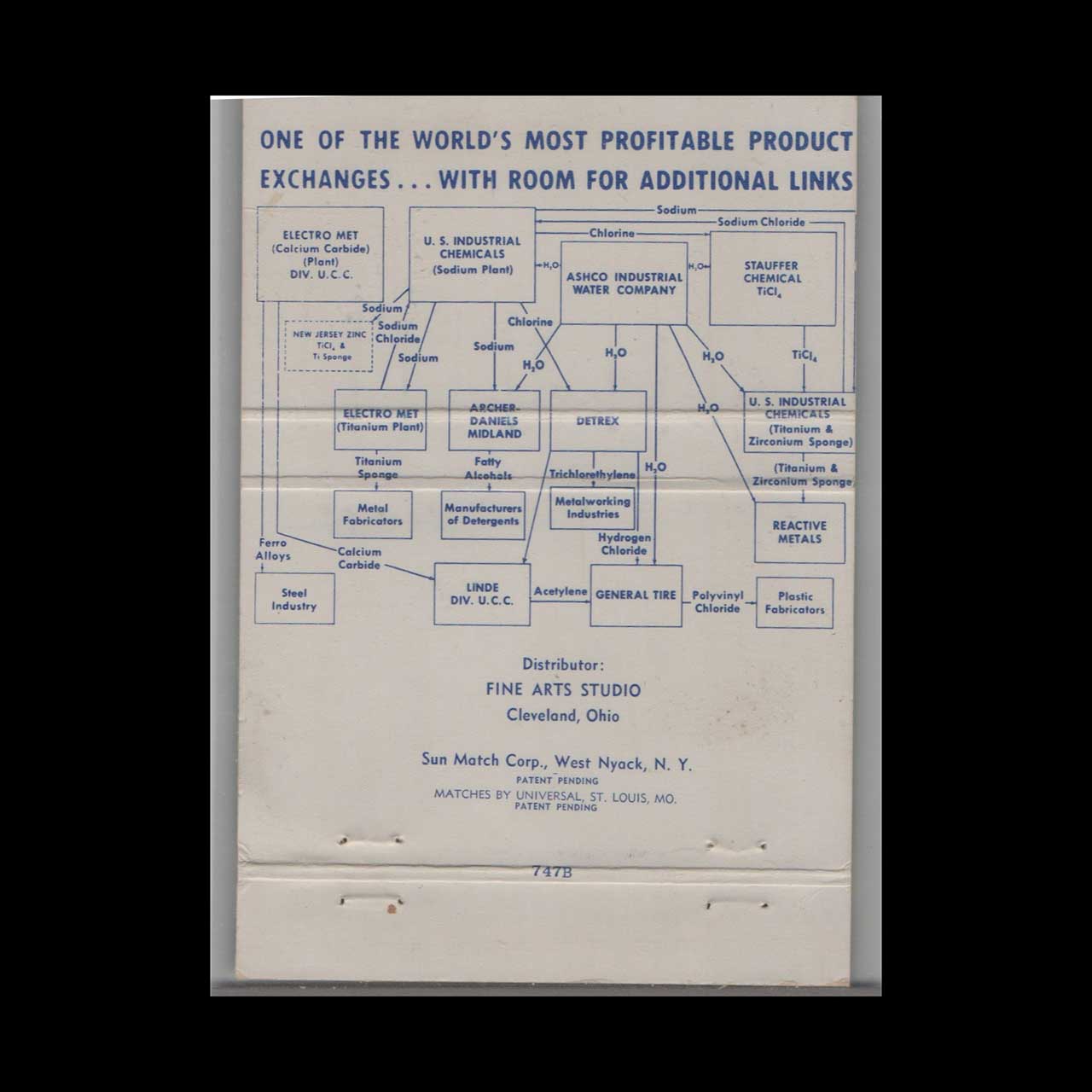 Vintage matchbook cover advertising Ashtabula Chemical Chain Cleveland OH.