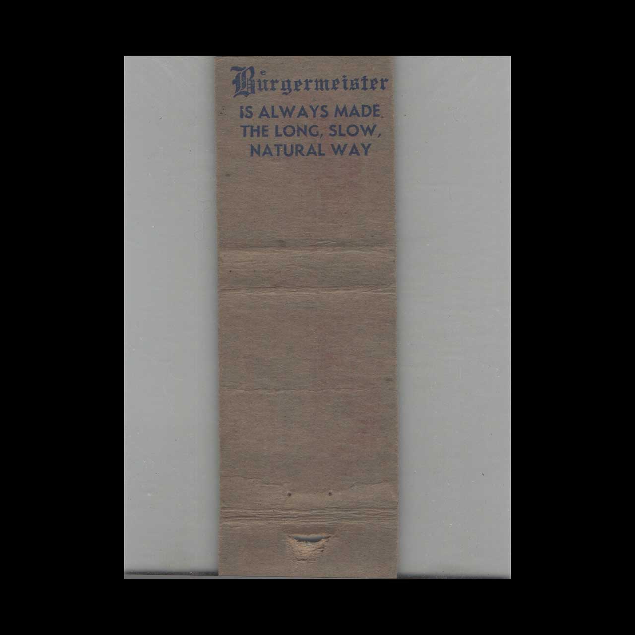Vintage matchbook cover advertising Beer Burgermeister A Truly Fine Beer.