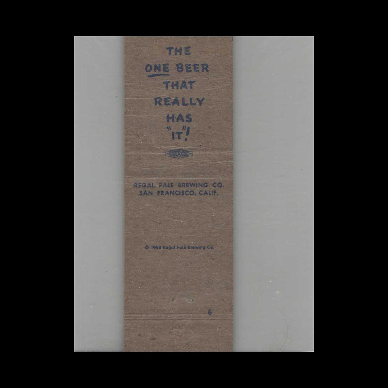 Vintage matchbook cover advertising Beer Regal Select Beer.