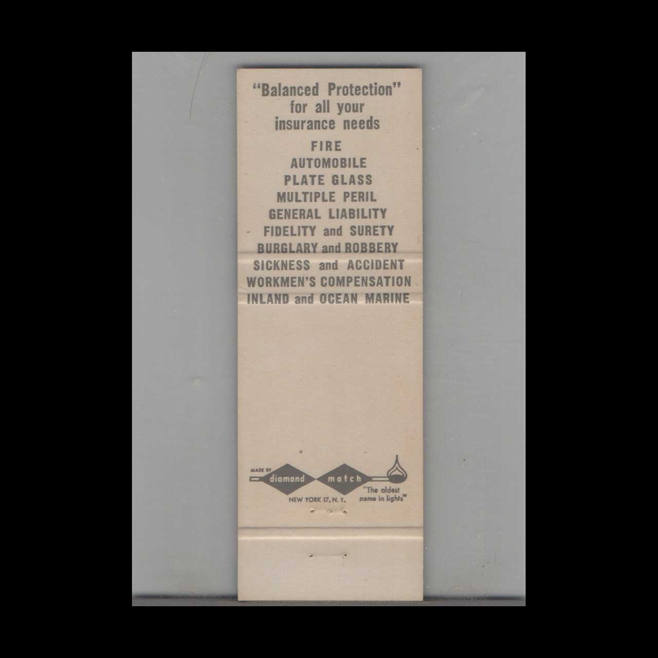 This vintage matchbook cover promotes Ben Eubanks insurance Agency Bristol, FL. Produced during the mid-century advertising era, it reflects period typography and graphic design. A collectible piece of American advertising ephemera suitable for display or archival preservation.