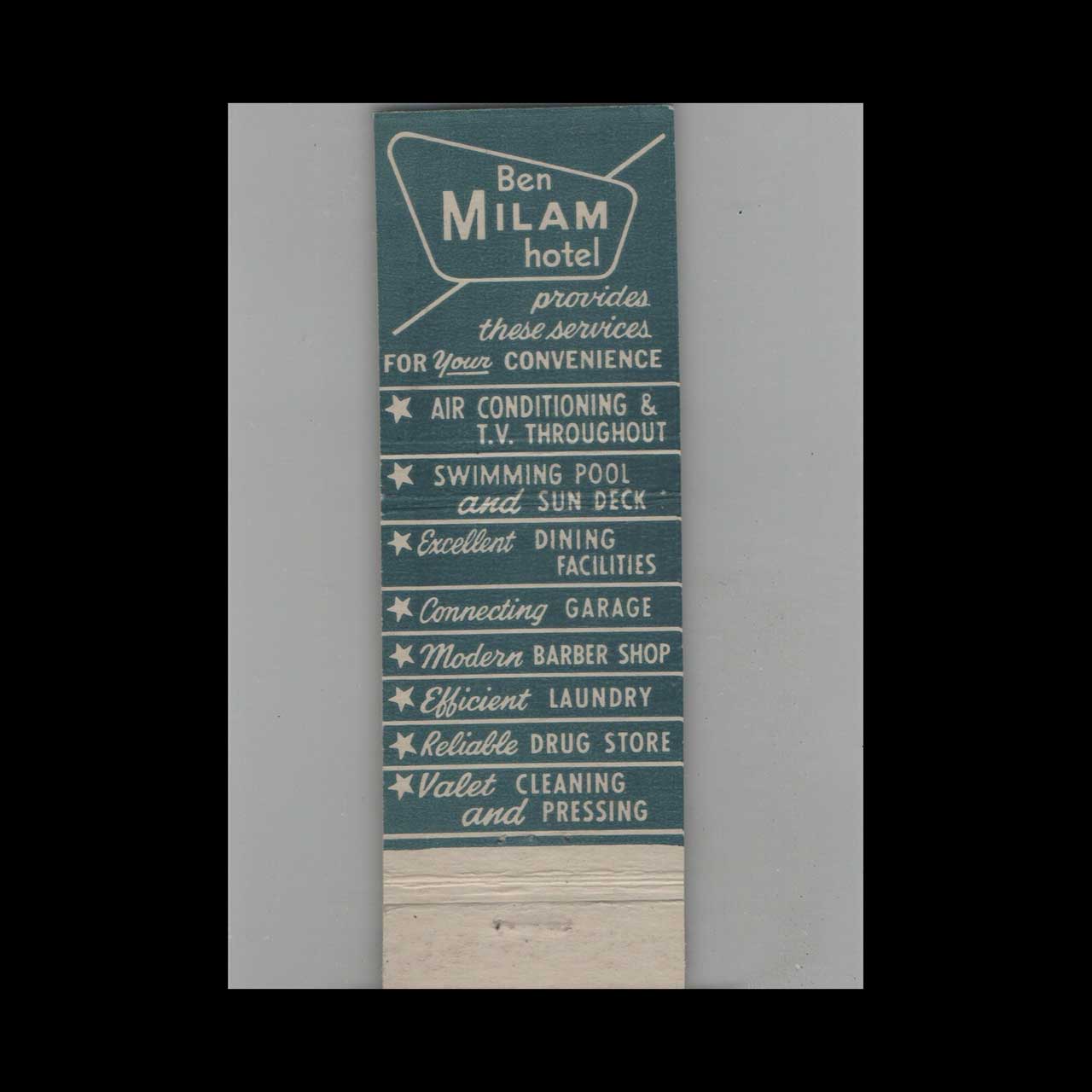 Matchbook Cover Ben Milam Hotel Houston TX #1