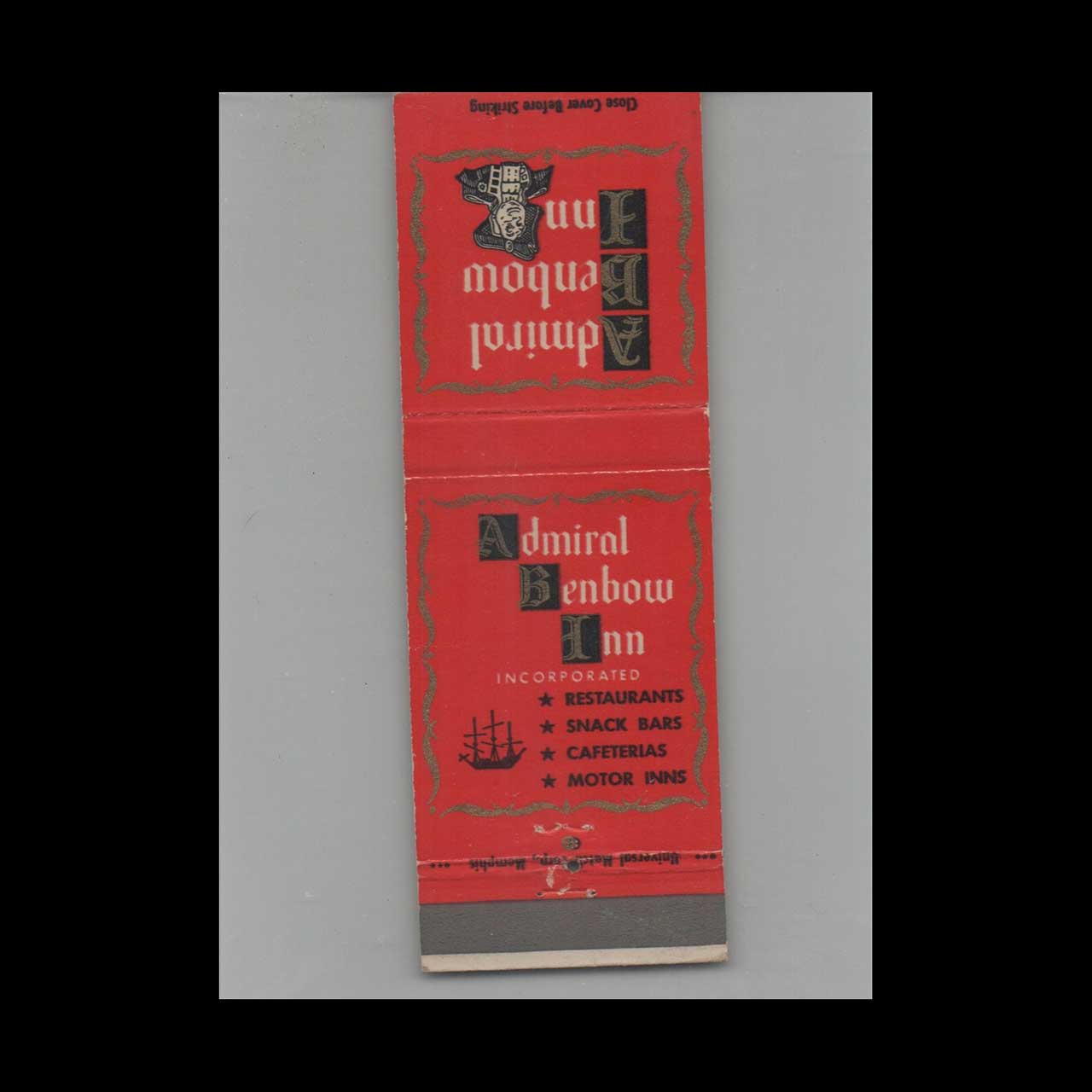 Vintage matchbook cover advertising Benbow Motor Inns Memphis TN.