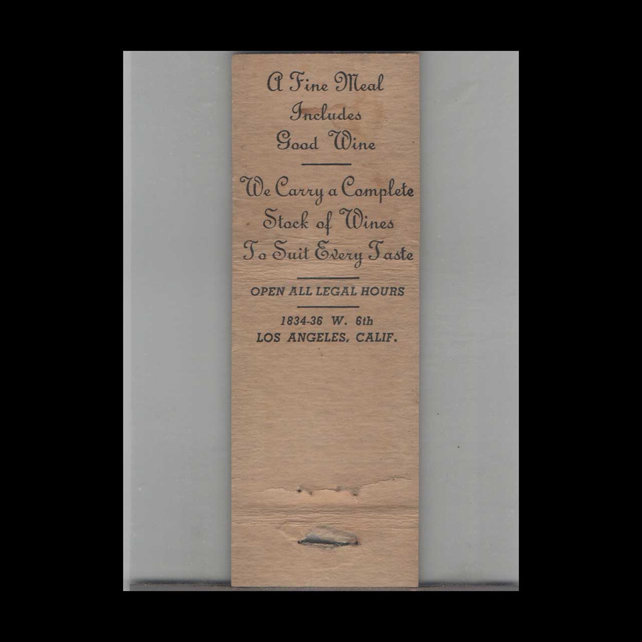 Vintage matchbook cover advertising Bonnie Brae Liquor House Los Angeles, CA.
