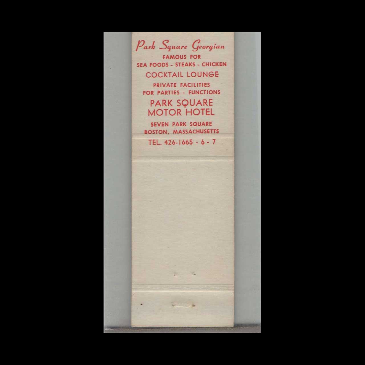 Vintage matchbook cover advertising Boston, MA Park Square Motor Hotel & Georgian Restaurant.