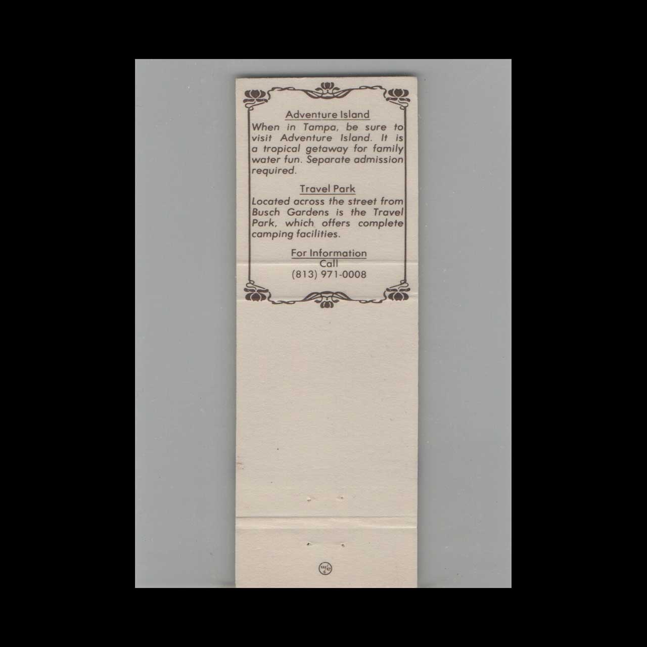 Vintage matchbook cover advertising Busch Gardens The Dark Continent Orlando, FL.