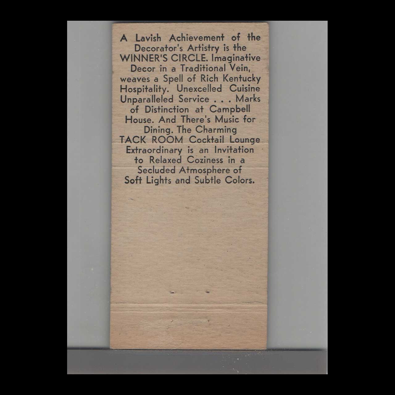 Vintage matchbook cover advertising Campbell House Hotel Lexington, KY.