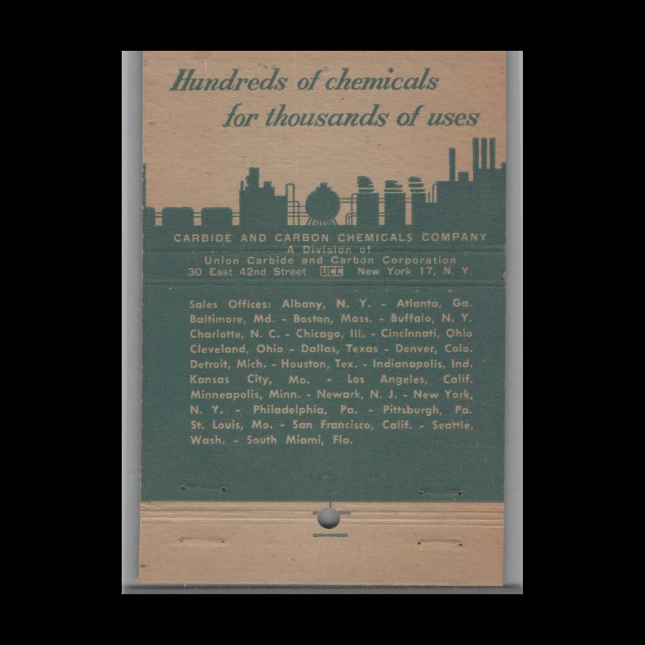 Vintage matchbook cover advertising Carbide and Carbon Chemicals.