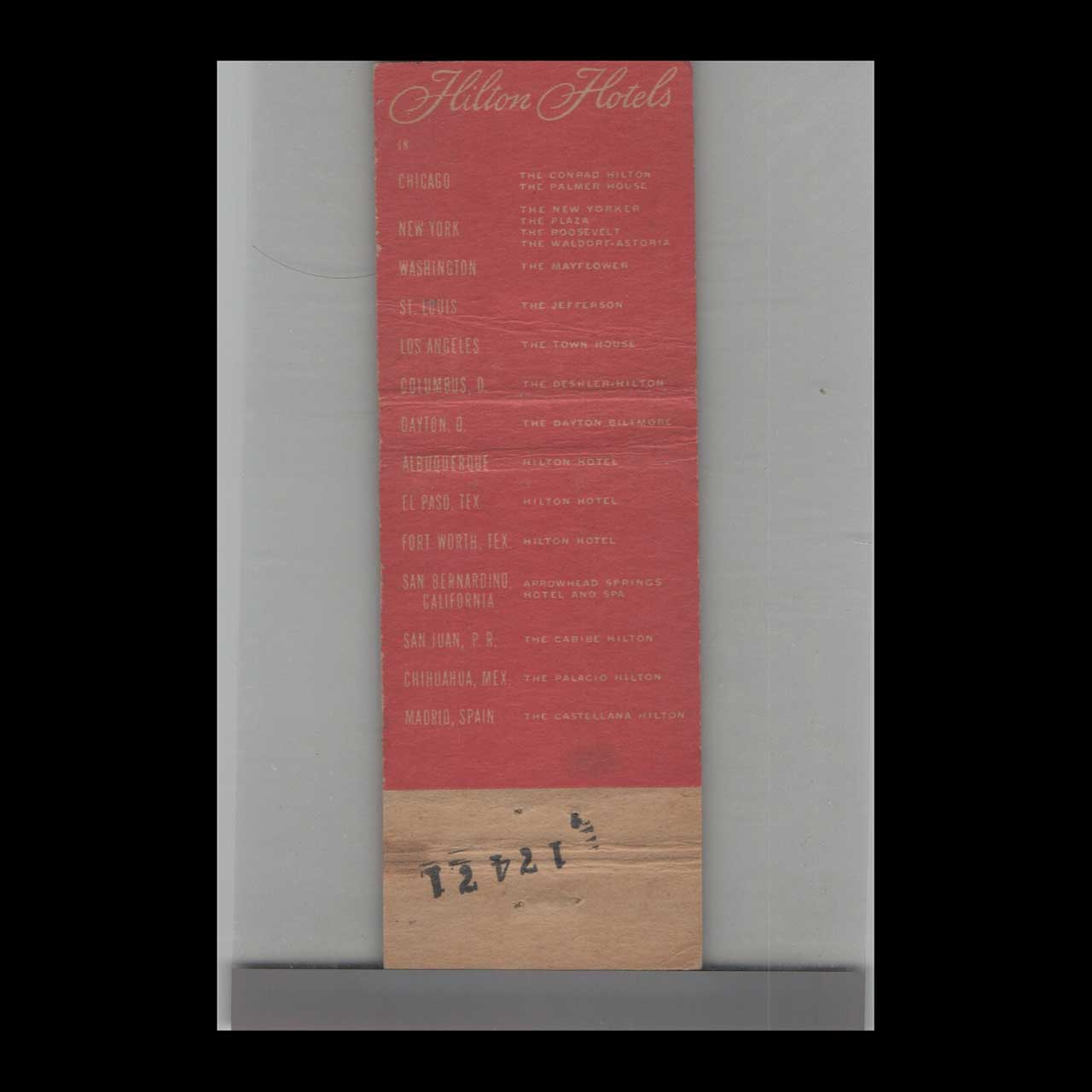 This vintage matchbook cover promotes Caribe Hilton San Juan Puerto Rico. Produced during the mid-century advertising era, it reflects period typography and graphic design. A collectible piece of American advertising ephemera suitable for display or archival preservation.