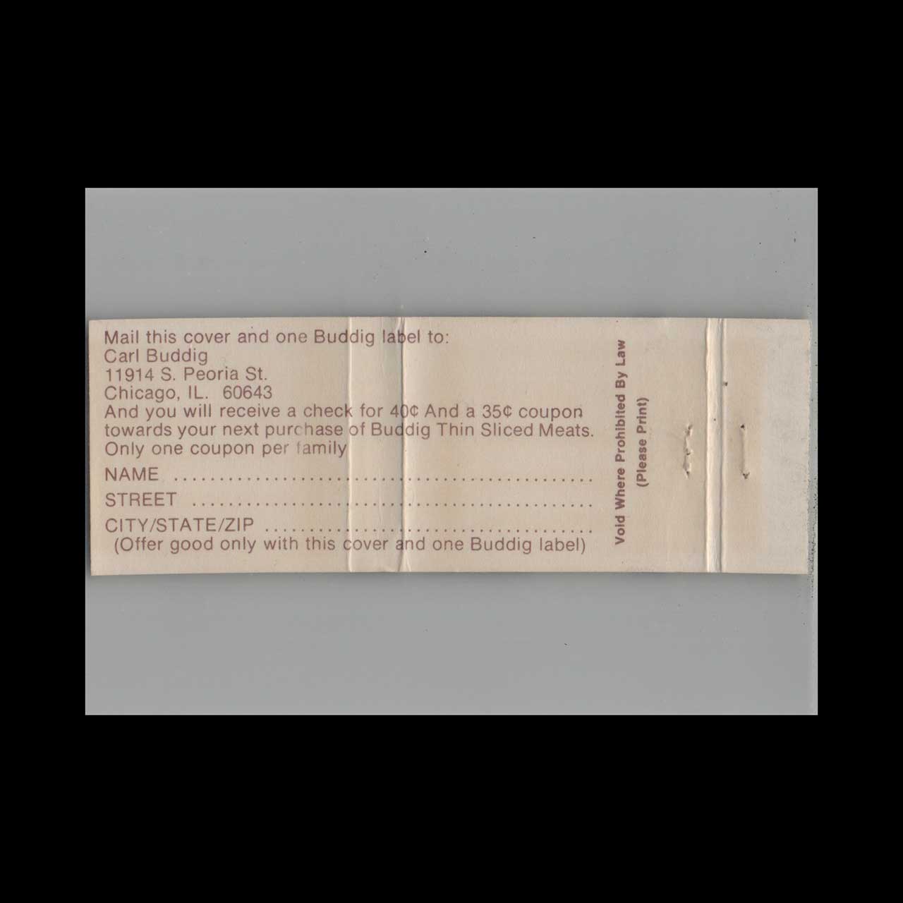 Matchbook Cover Carl Buddig Smoked Sliced Beef Grocery Store Item