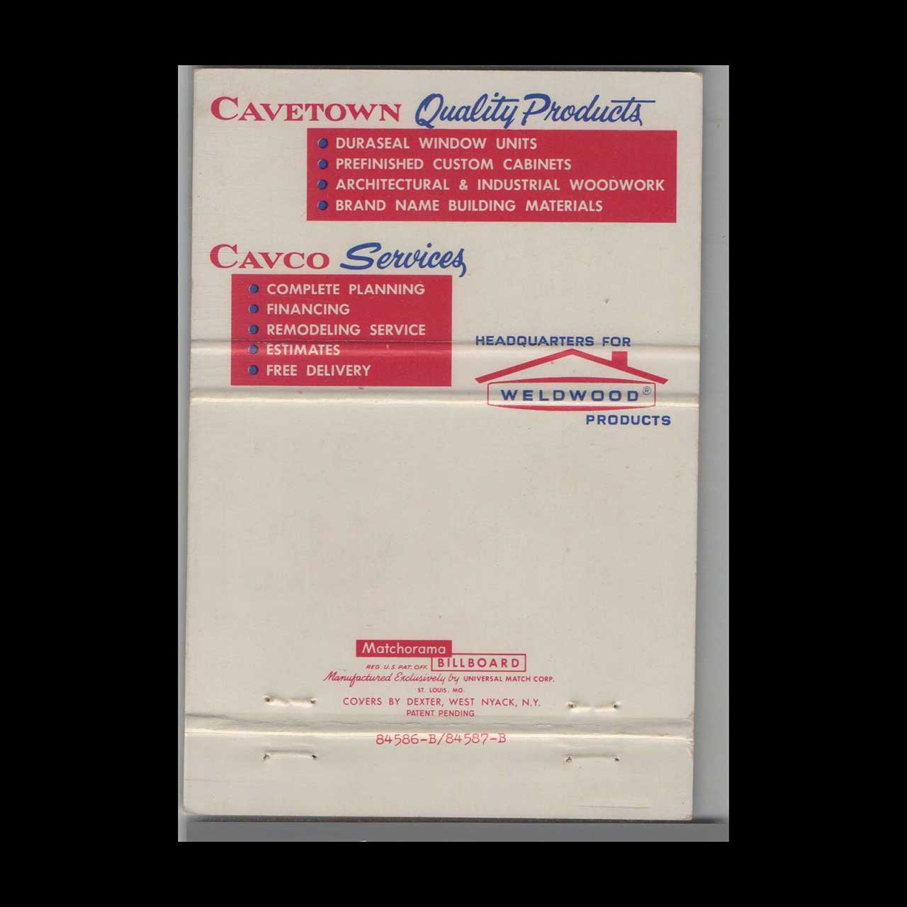 Vintage matchbook cover advertising Cavetown Planing Mill Co. Cavetown, MD.