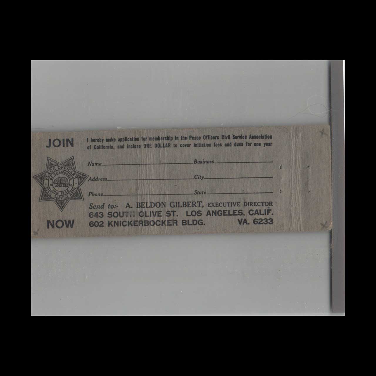 Matchbook Cover Civil Service For Peace Officers Fireman & Public Employees