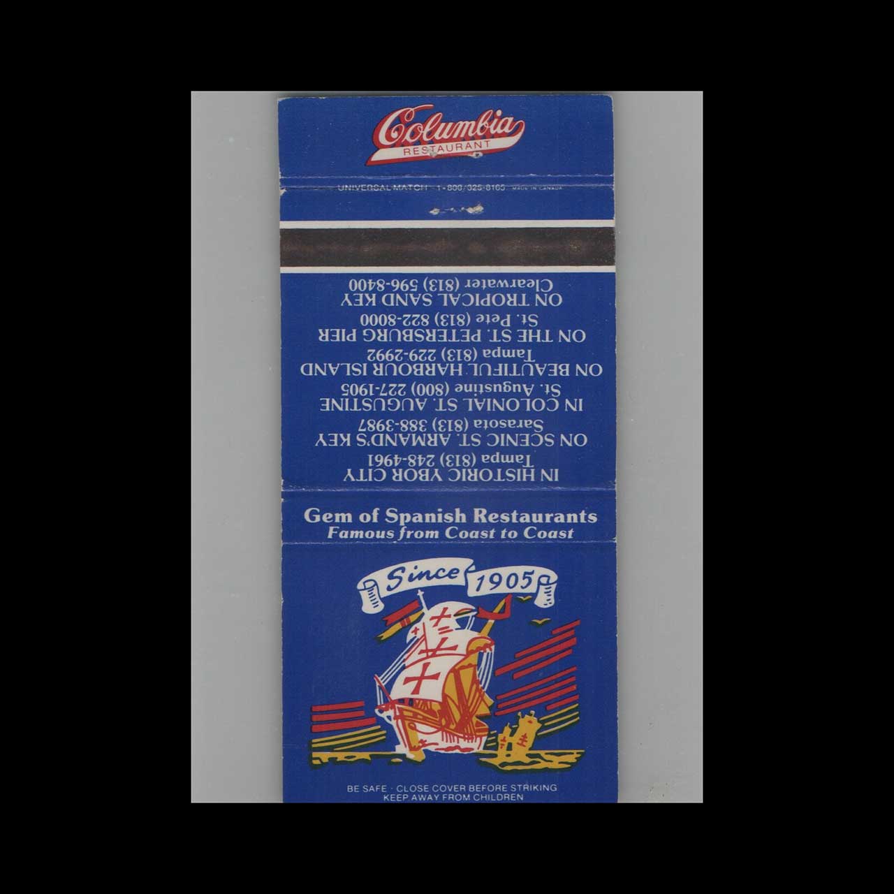 Tags: Columbia Restaurant, matchbook cover, matchcover