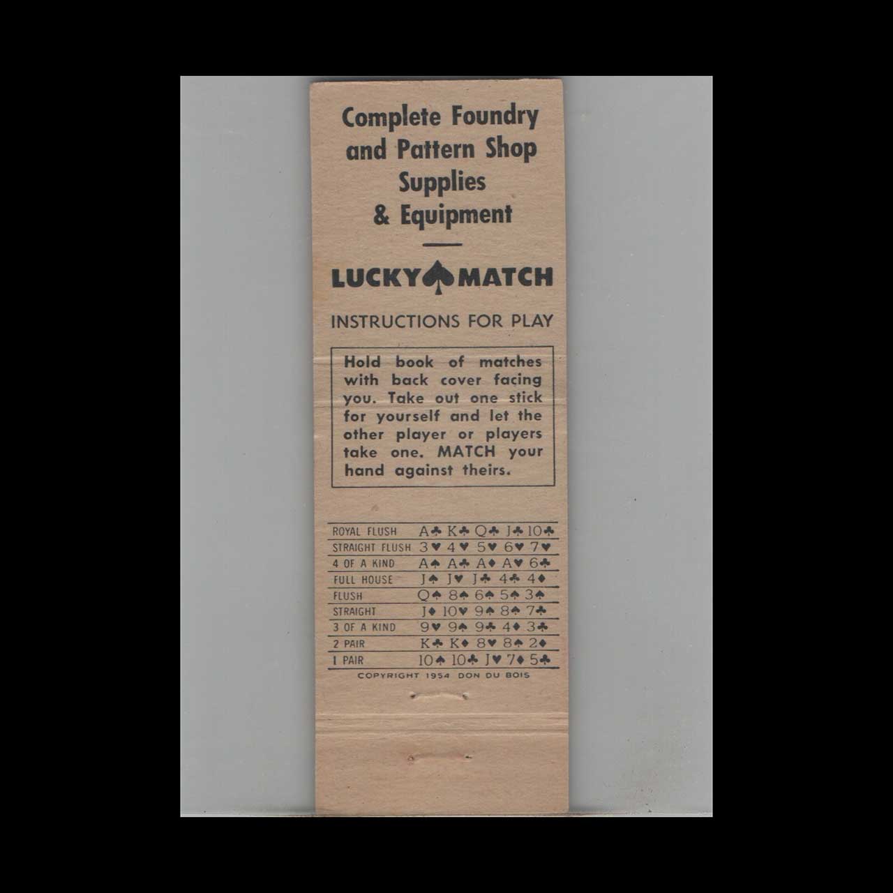 Vintage matchbook cover advertising Combined Supply and Equipment Co Buffalo NY.