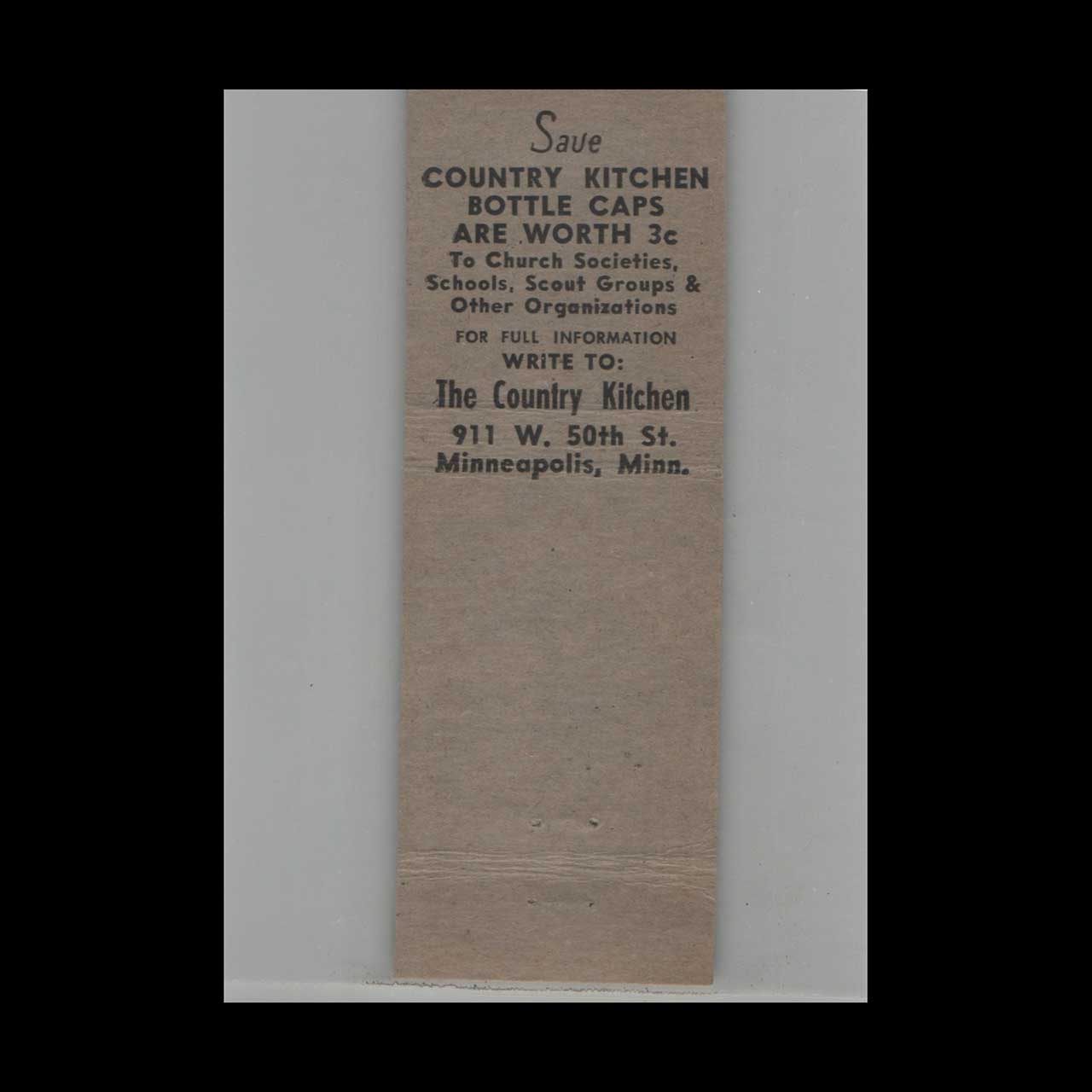 Matchbook Cover Country Kitchen Roquefort Dressing