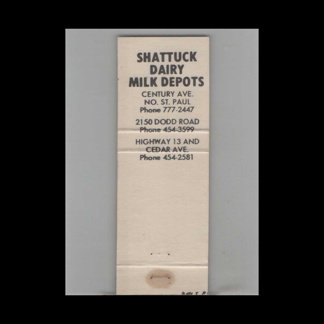 Matchbook Cover Dairy Related Shattuck Dairy North St. Paul, MN