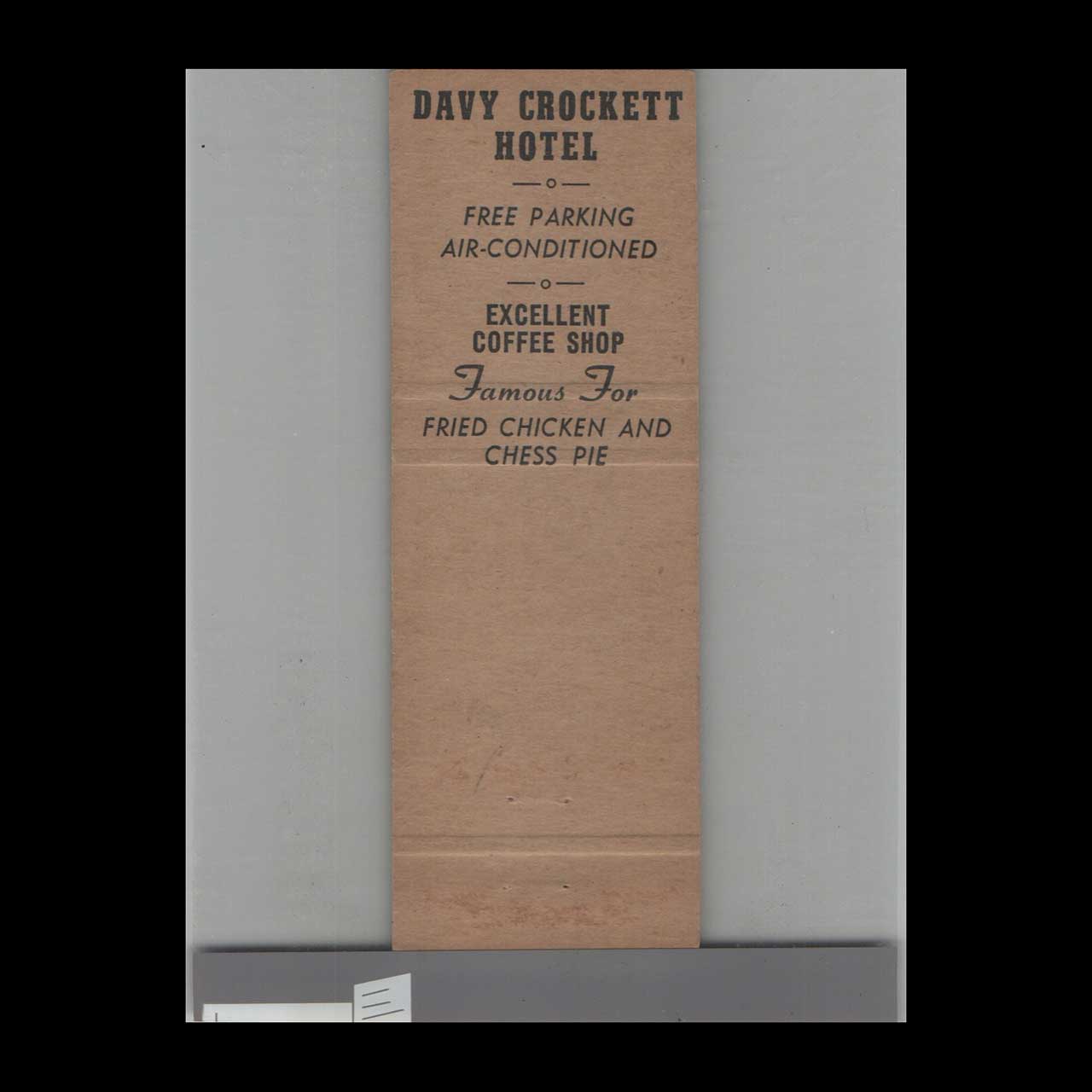Matchbook Cover Davy Crockett Hotel Union City, TN