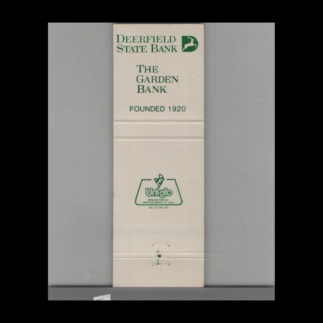Vintage matchbook cover advertising Deerfield State Bank Deerfield, IL.