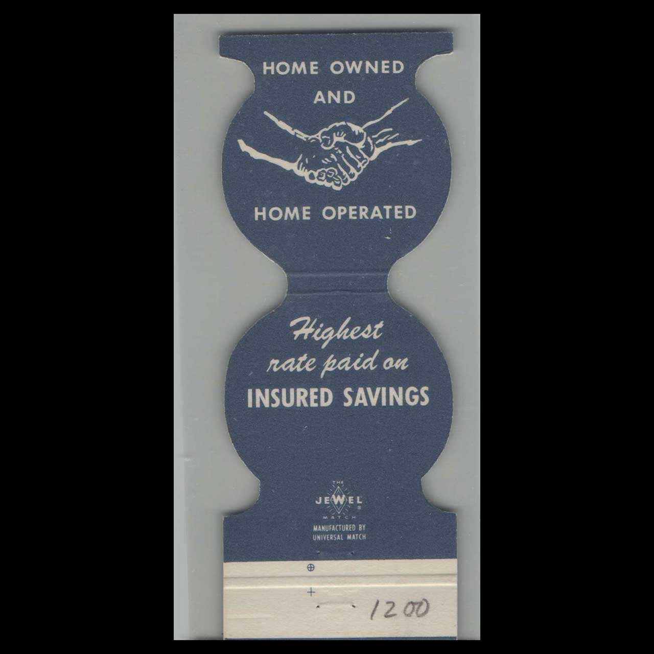 Vintage matchbook cover advertising Die Cut Lompoc Savings & Loan Lompoc, CA.