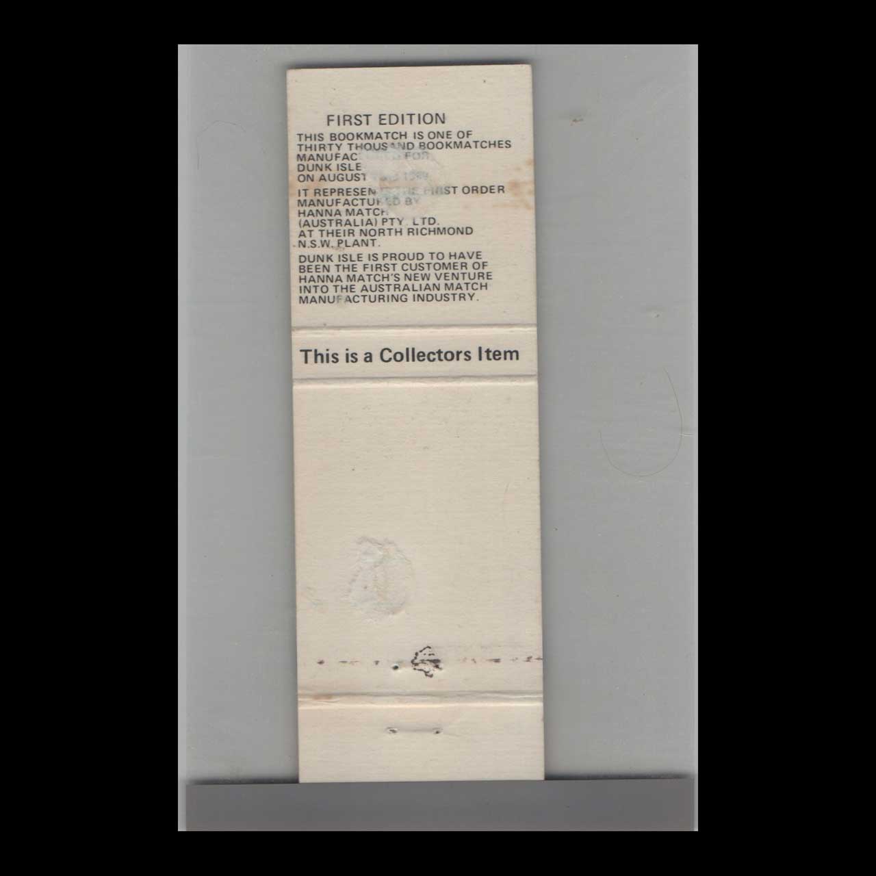 Vintage matchbook cover advertising Dunk Isle Great Barrier Reef Village Australia.