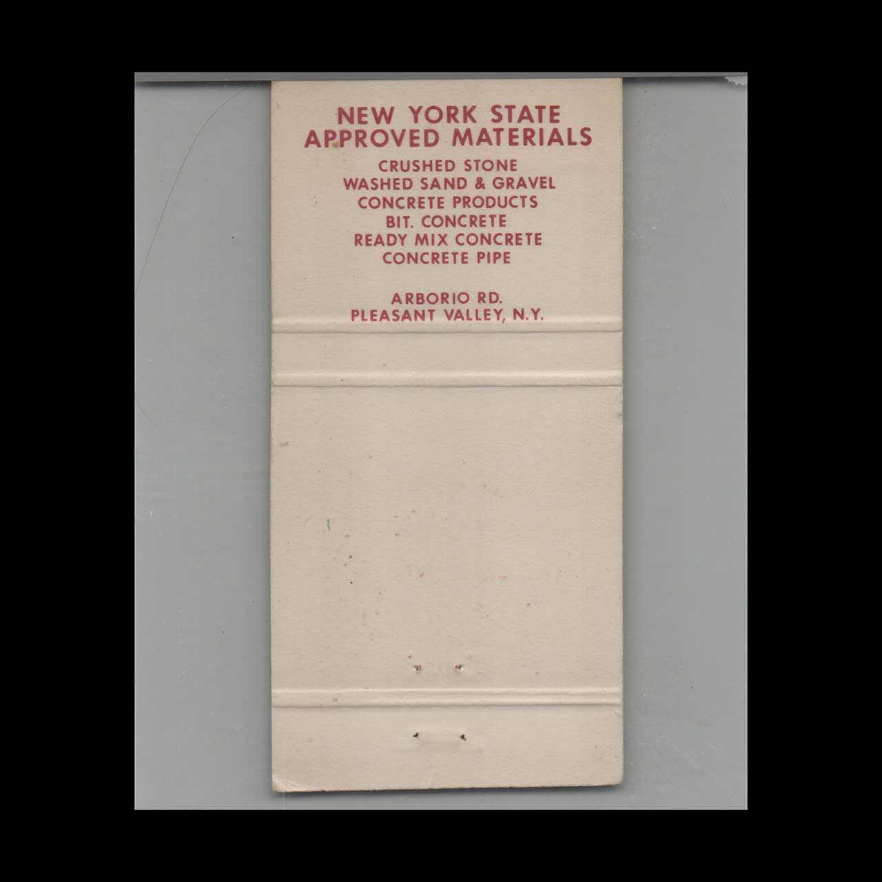 Vintage matchbook cover advertising Dutchess Quarry & Supply Co. Pleasant Valley, NY.