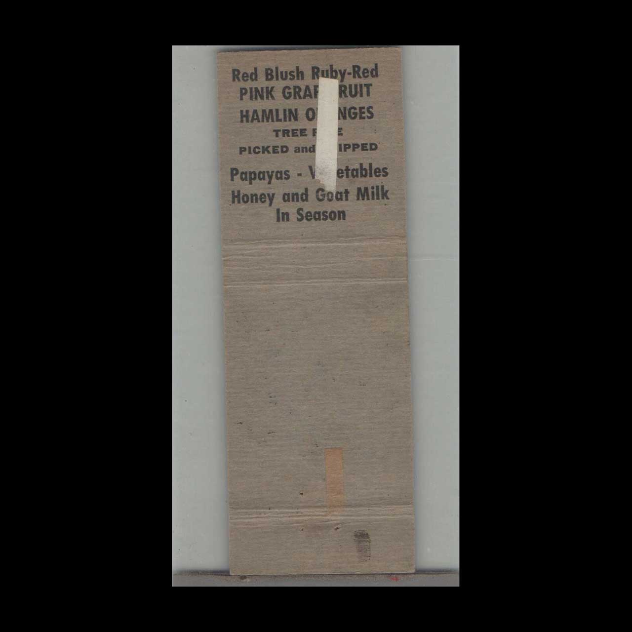 Vintage matchbook cover advertising Edward Radtke Citrus Farm Los Fresnos, TX.
