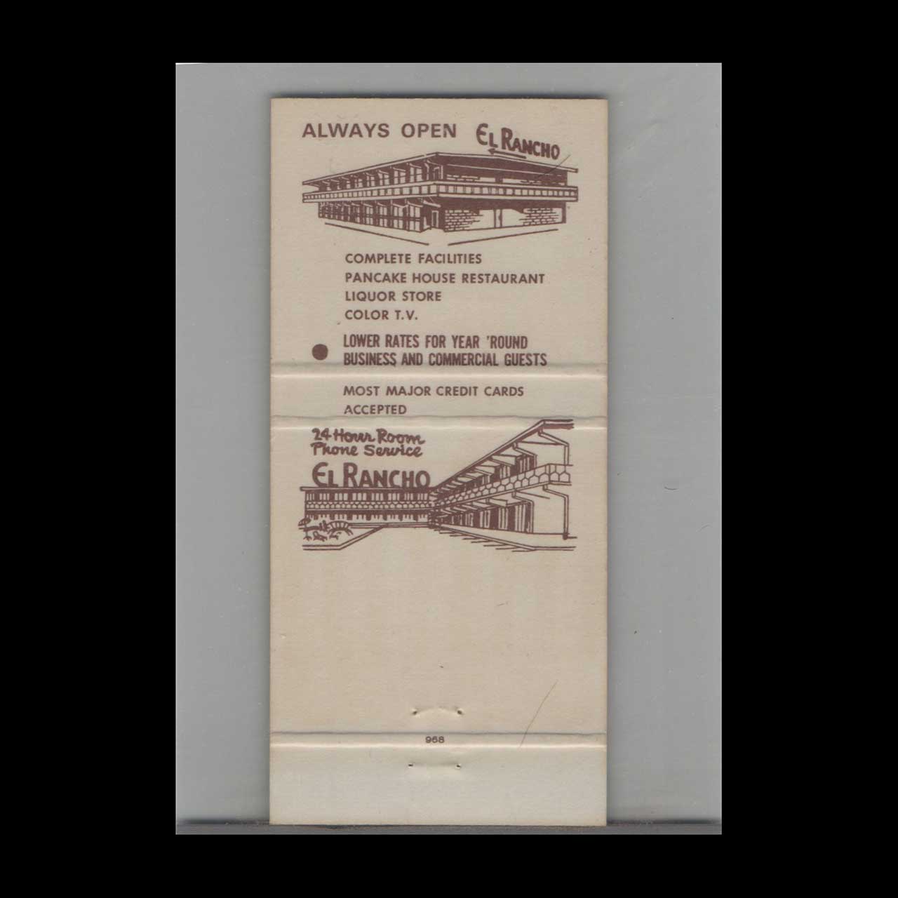 Matchbook Cover El Rancho Motel Rock Springs, WY