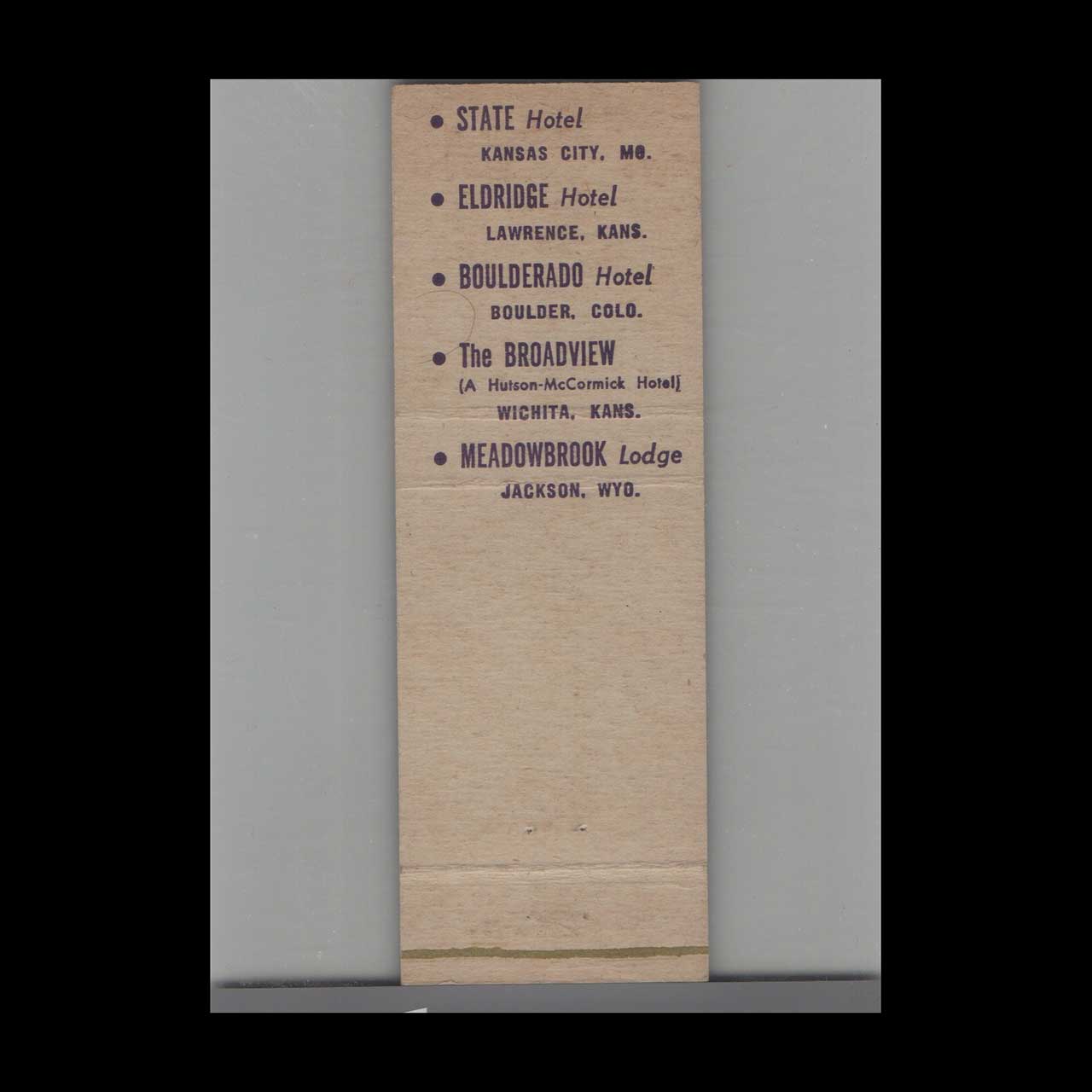 Vintage matchbook cover advertising Elephant Hutson Hotels Pink Elephant.