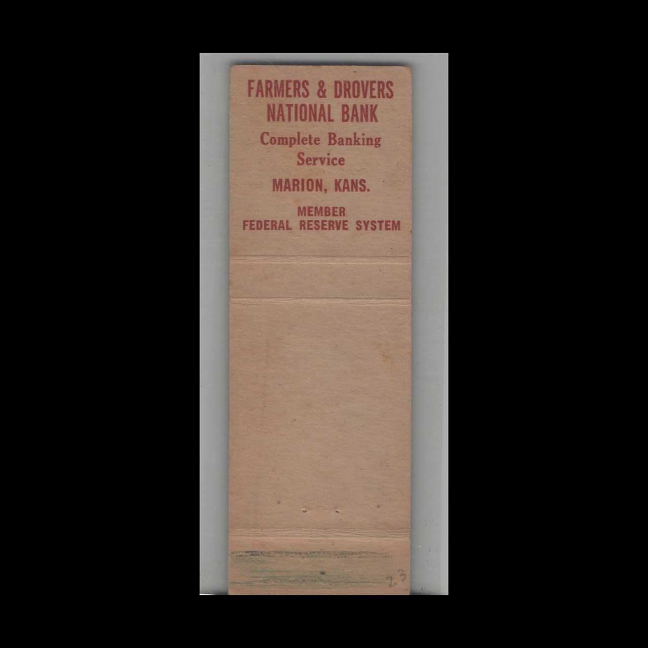 Vintage matchbook cover advertising Farmers And Drovers National Bank Marion, KS.