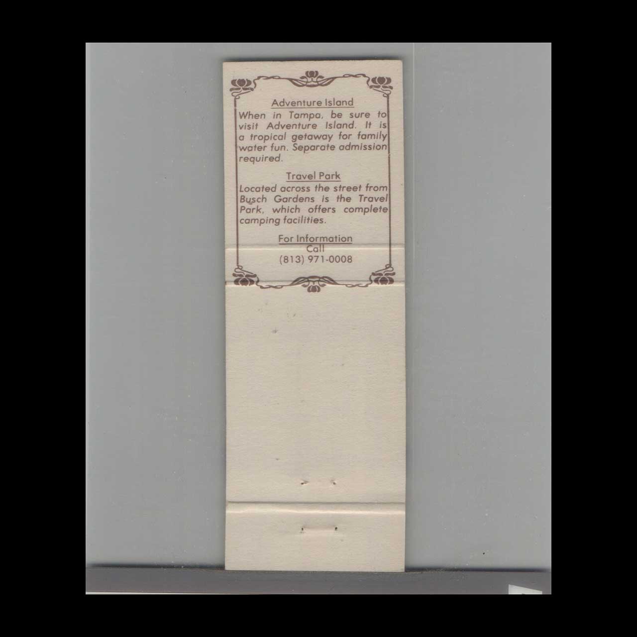 Matchbook Cover Featuring Busch Gardens in Tampa, FL