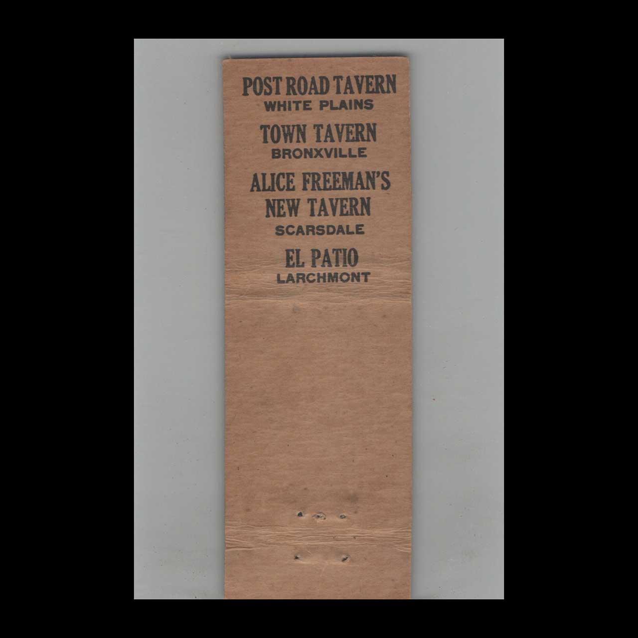 Matchbook Cover Federal Match Co. Alice Freeman’s Tavern Scarsdale NY