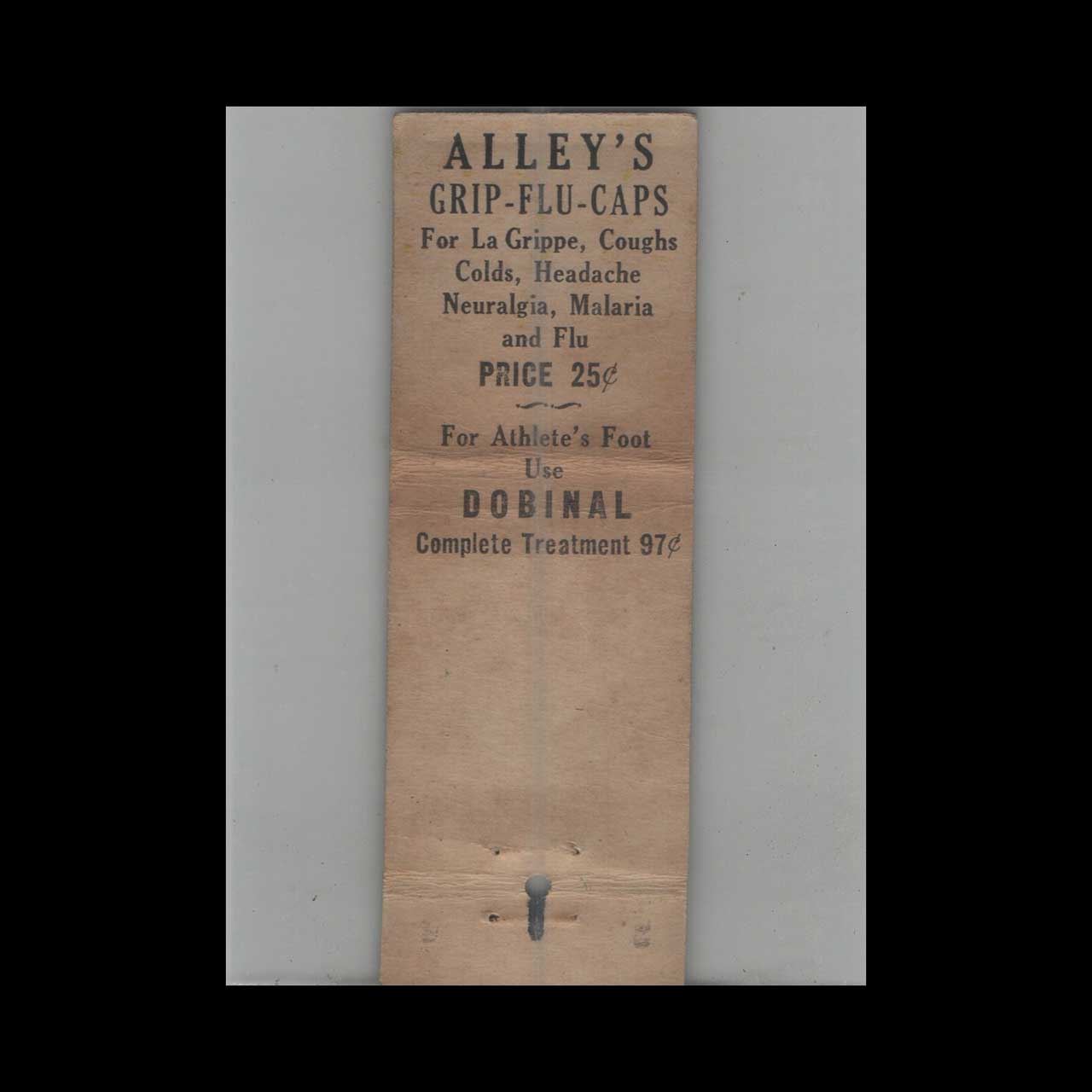 Vintage matchbook cover from the 1930s or early 1940s featuring Alley’s Drug Stores Birmingham AL, produced by the Federal Match Company.