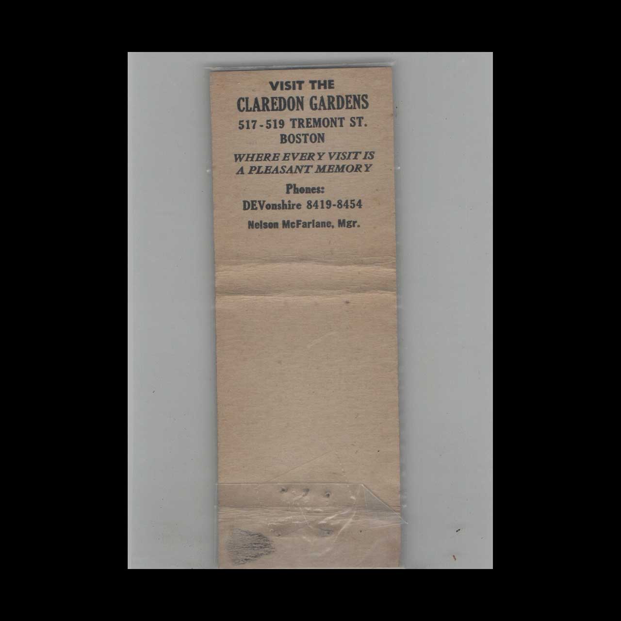 Tags: advertising, Americana, art, artwork, bar, boston, branding, city, Clarendon Gardens, classic, collectible, color, cuisine, design, dining, establishments, events, food, gifts, history, hospitality, hotel, keepsake, liquor, local, match, matchbook, matchbook cover, memorabilia, menu, nightlife, promotional, quality, restaurant, retro, showcase, style, Tremont St, unique, urban, vintage