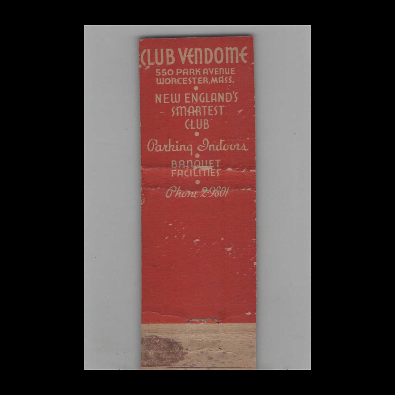 Matchbook Cover Federal Match Co. Club Vendome Worcester MA